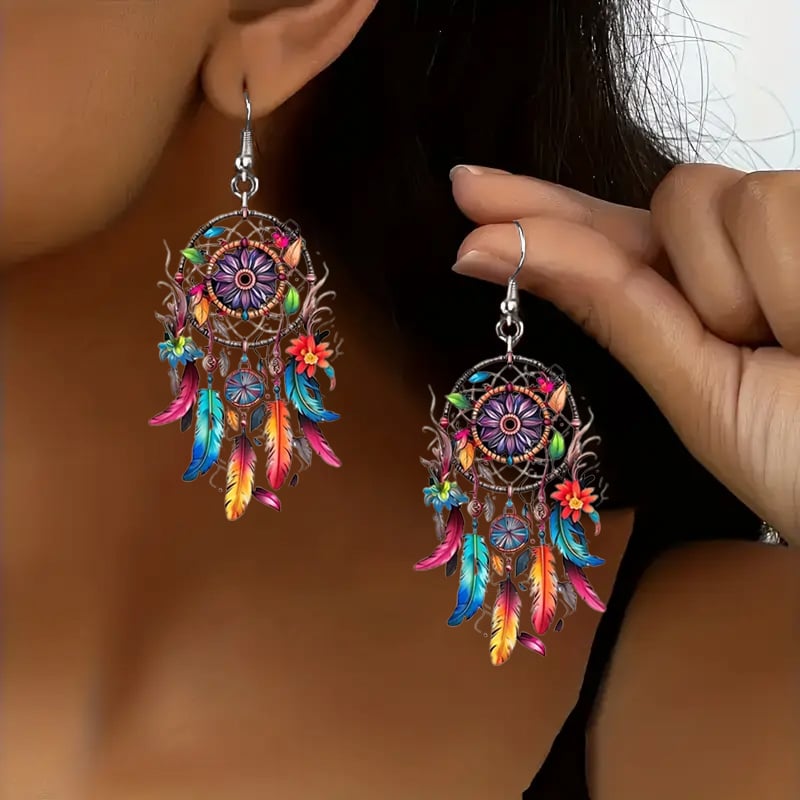 🌙 Boho Dreamcatcher Feather Earrings