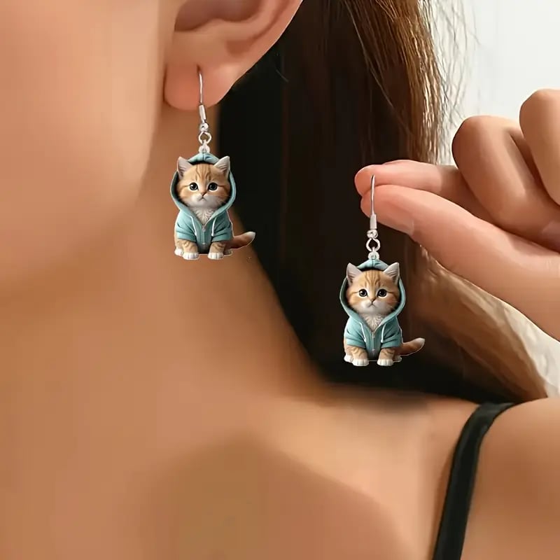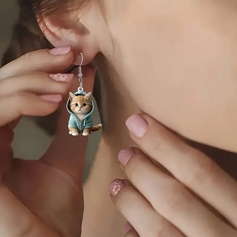 🌟 Exquisite Craftsmanship: Each earring is crafted with intricate details to capture the kitten's expressive face and cozy hoodie. making it a standout piece.