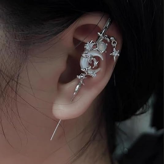 đăNovel DesignăInspired by the myth of the moon. these earrings capture the enchanting beauty and symbolism of celestial bodies. They add a touch of mystery and allure to any outfit. They strike the perfect balance between modernity and tradition. offering a snug fit that adjusts to the contours of your ears.