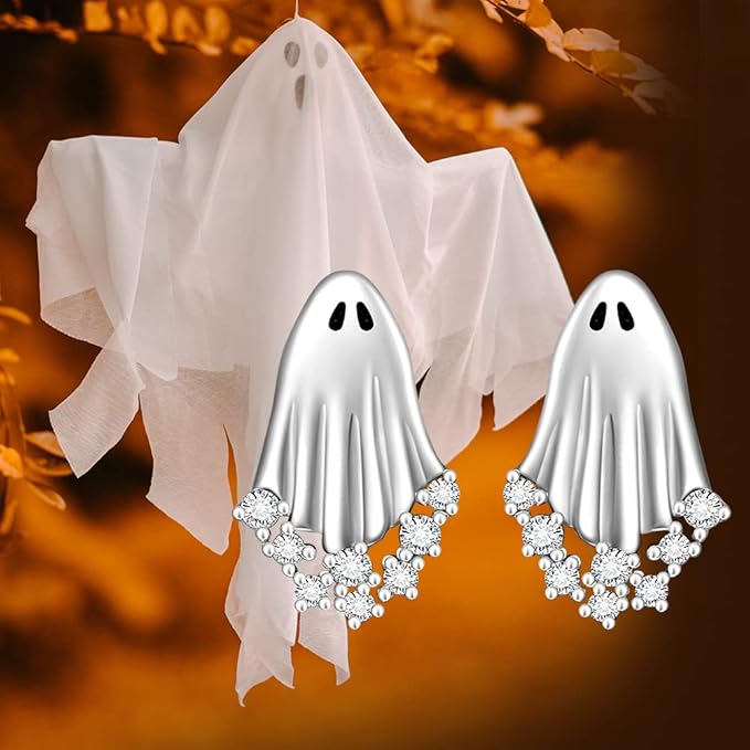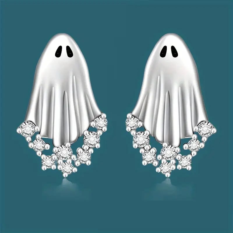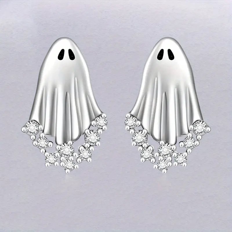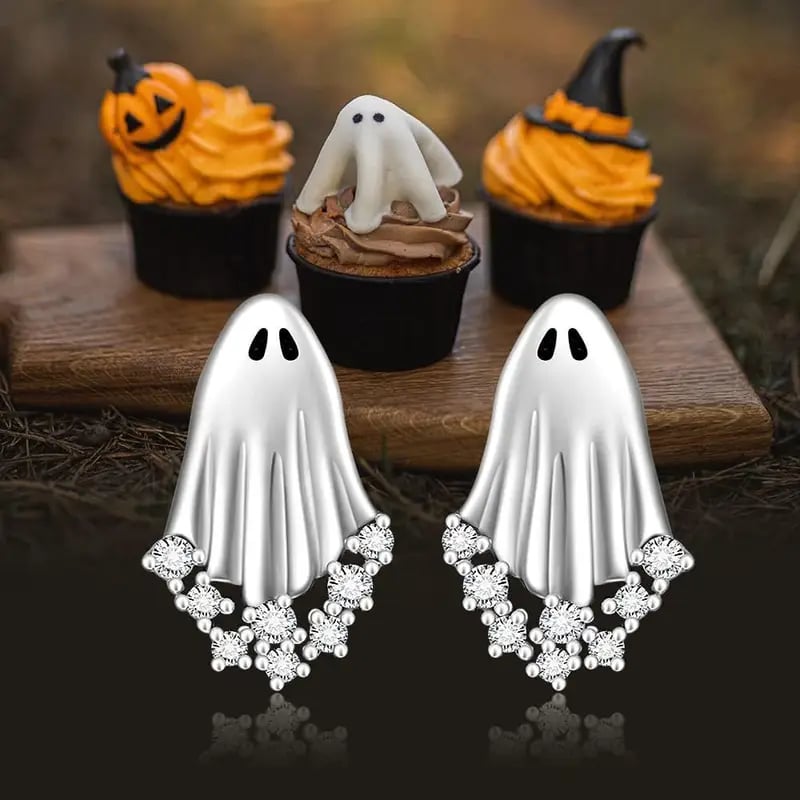 😍Add a dash of cuteness with these sparkling ghost studs that draw attention and add a playful Halloween charm.